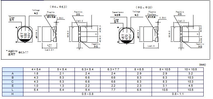 VET(VT)Series Chip Type Aluminum Electrolytic Capacitors
